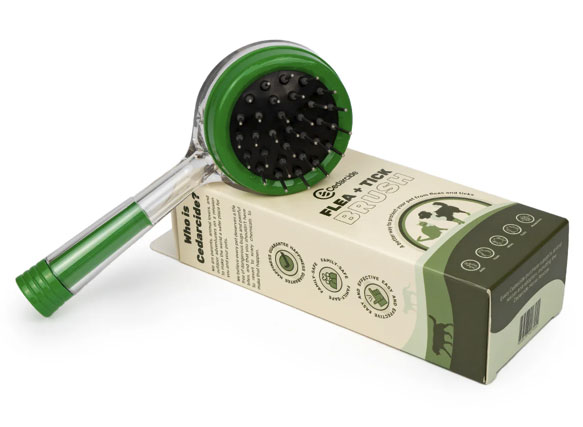 The Cedarcide Flea & Tick Brush is the safest, easiest and most effective way to protect your dog or cat from fleas and ticks. Designed to dispense all-natural Cedarcide Original insect repellent directly to your pet’s skin, the Flea & Tick Brush penetrates even the thickest of furs to kill all hidden pests, while also providing protection against future infestation. Simply unscrew the handle lid, fill the Flea + Tick Brush with Cedarcide Original, then gently groom your pet. No spray, no dip, no mess. It’s that easy!