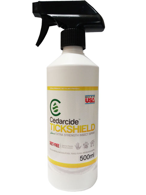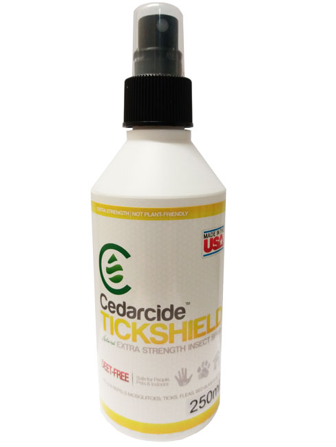 Tickshield is simply an extra strength version of Cedarcide Original insecticide & repellent.