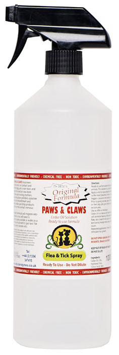 Dr. Ben's Paws & Claws formulation is a safe and effective natural insecticidal formula, insect neutralizer and repellant that is made from a proprietary natural formula which contains Cedar Oil and hydrated Silica. Essential oils, especially Cedar Oil iare known for their potent insecticidal capabilities and pheromone diffusion.